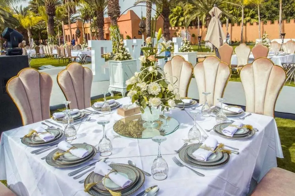 Faites de votre Mariage à Marrakech un conte des mille et une nuits. La Ville Rouge offre un cadre d’une beauté et d’un romantisme inégalés pour célébrer votre union. Que vous optiez pour la splendeur d’une villa avec vue sur l’Atlas, l’intimité d’un riad historique, ou le faste d’un hôtel de luxe, Marrakech by Heart vous accompagne à chaque étape de l’organisation. Du choix du lieu aux traiteurs, en passant par la décoration somptueuse, l’animation musicale et les arrangements floraux, nous veillons à ce que votre grand jour soit magique, sans stress et reflète parfaitement vos rêves.